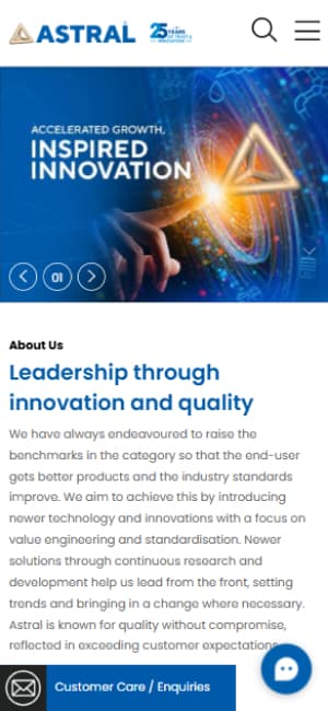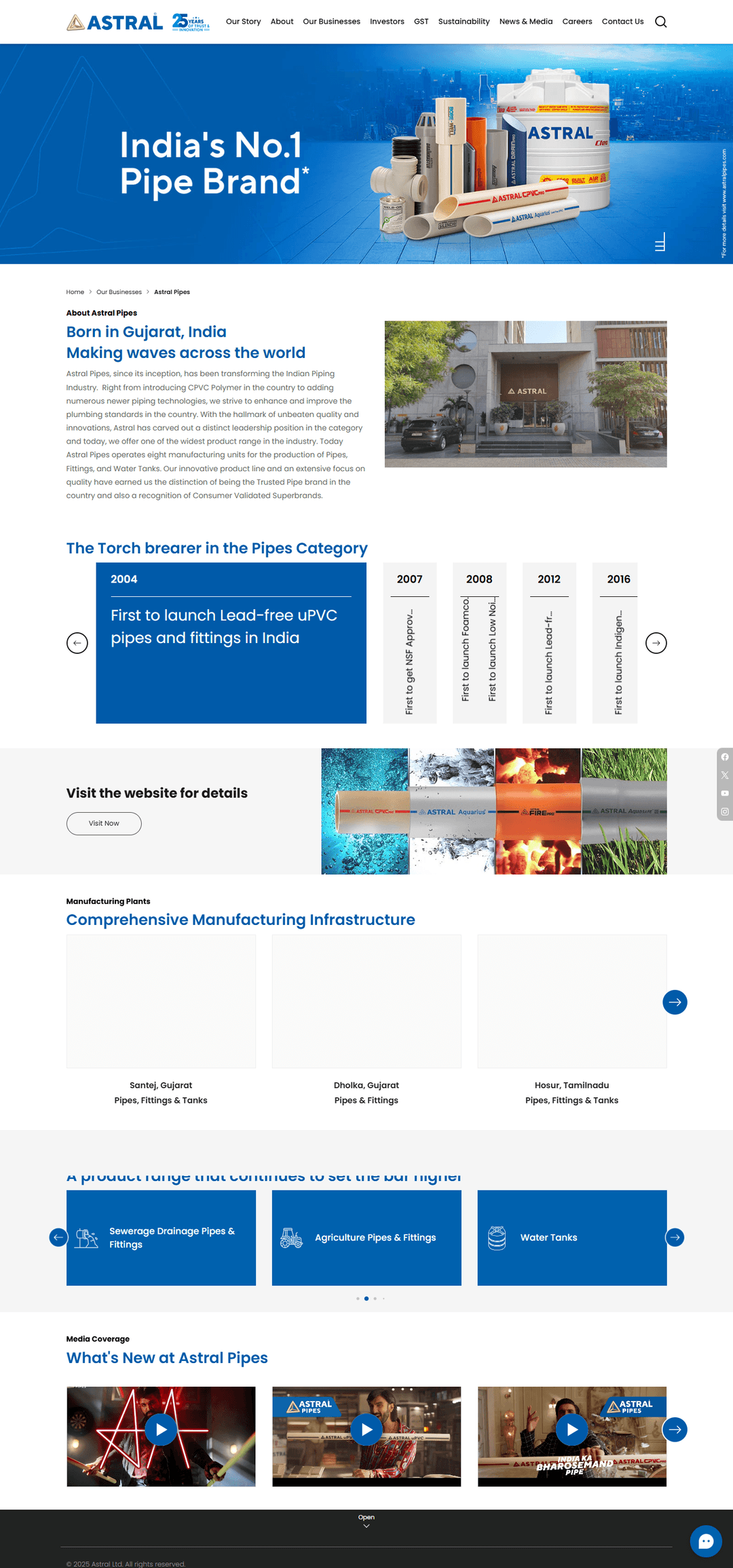- Pipes (Catalogue Website): A dedicated website showcasing Astral's extensive range of polymer piping systems, designed to provide detailed product information and specifications.