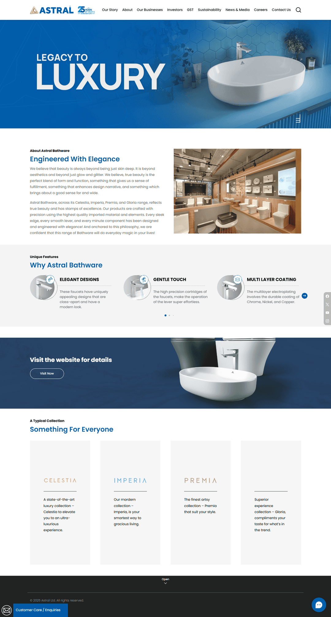 - Bathware (Catalogue Website): A user-friendly platform highlighting Astral's innovative bathware solutions, complete with high-quality images and product details.