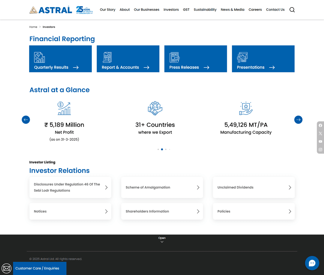 - LTD (Company Website): A robust company website that provides an overview of Astral Limited, its history, mission, and diverse product offerings.